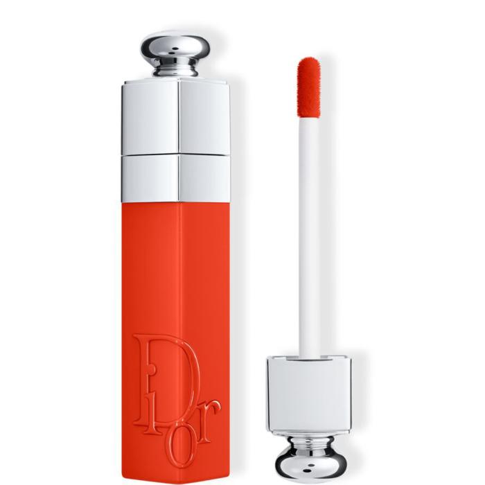 2. Breng vervolgens de Dior Addict Lip Tint aan door de applicator in het midden van de lippen te plaatsen, net onder de cupidoboog, en de lippen van rechts naar links te kleuren.