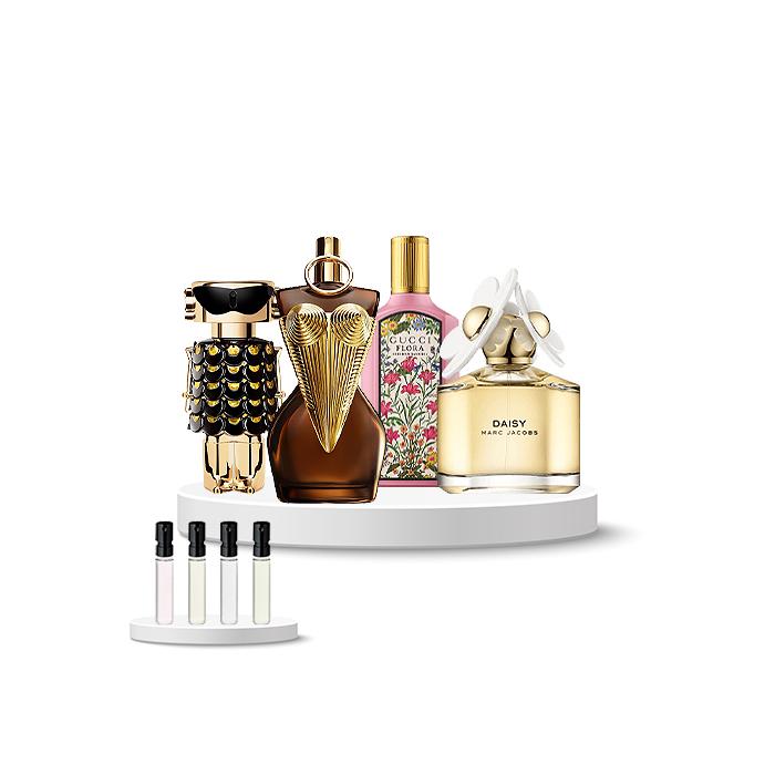Discovery Set Women | Jean Paul Gaultier Divine Elixir - Rabanne Fame Parfum - Gucci Gorgeous Gardenia - Marc Jacobs Daisy